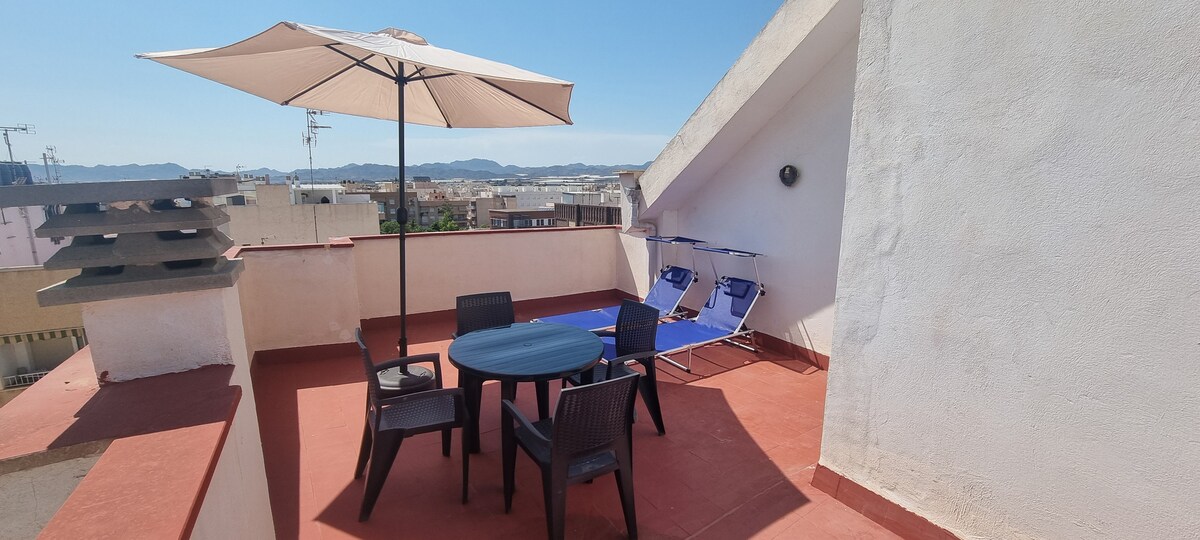Disfrute de nuestro balcón al Mediterraneo donde relajarse con el sonido del mar, en una casa acogedora y moderna. Se encuentra en primera línea de playa y cómodamente podrás llegar directamente en bañador y darte un refrescante chapuzón en verano. El alojamiento está ubicado en una 4ª planta y proporciona unas vistas panorámicas e impresionantes de la playa principal de Águilas y la costa de Murcia, que cuenta con bandera azul, accesos con duchas y servicio de vigilancia por Cruz Roja Española.