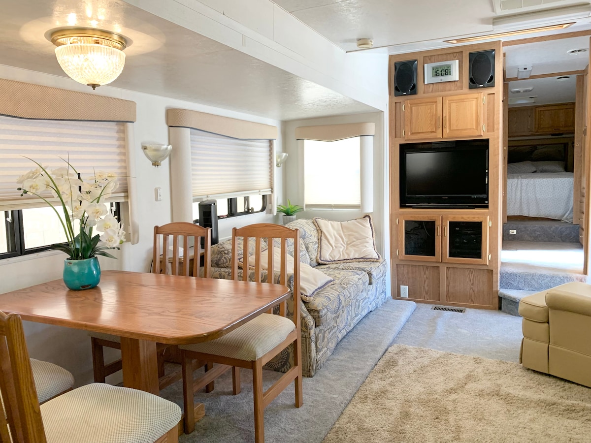 ¡Disfruta de tu estancia en Lancaster en esta espaciosa, privada y asequible autocaravana! Esta espaciosa autocaravana ofrece 2 camas, un baño completo, una pequeña cocina completa, lavadora/secadora, un comedor y entretenimiento de televisión. Esta autocaravana tiene wifi ultrarrápido y ofrece aparcamiento gratuito en las instalaciones. Todos los servicios de la caravana funcionan perfectamente. Hay un manual exhaustivo de la casa que guiará tu estancia. Hay restaurantes y tiendas de comestibles como Vons y Walmart al final de la calle. Lockheed, Northrop y el hospital AV están a solo 15 minutos.