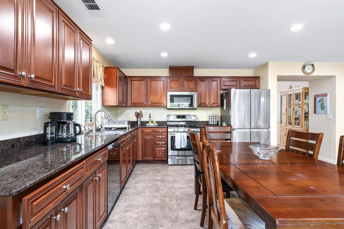 ¡Te damos la bienvenida a nuestro lujoso refugio de 4 dormitorios y 3 baños que personifica la comodidad y la relajación! Este espacioso alojamiento de Airbnb es el refugio perfecto para las vacaciones de tus sueños. Al entrar, te cautivará el diseño elegante y el ambiente acogedor. Prepara un festín en la cocina totalmente equipada y ten mucho espacio para servirlo en dos comedores. Relájate en el jacuzzi de arriba o disfruta del clima de California bajo el cenador del patio trasero. Disfruta de camas grandes y cómodas para dormir bien.