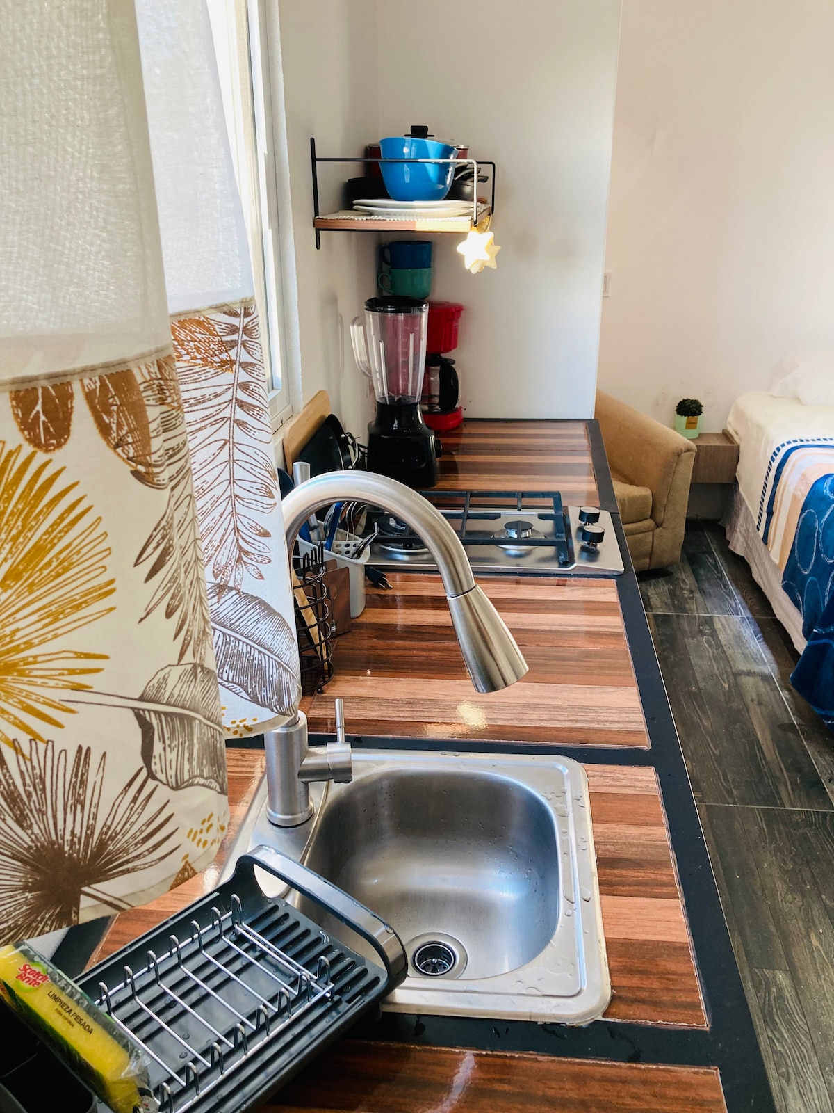 ✨ Acogedor estudio en planta baja (PEQUEÑO 12 m2) en un hermoso jardín tropical con más de 40 árboles frutales. Ubicado en el corazón de Cabo! Tiendas, restaurantes y vida nocturna a unos pasos! 5 min. a pie de la marina y 15 min. a pie de la playa 🏝️ ✅ Colchón memory foam y cortinas opacas para descanso ✅ Estacionamiento privado GRATUITO ✅ Baño privado con amenities ✅ Cocina privada con electrodomésticos ✅ Café y té de cortesía ✅ TV con Netflix y YouTube ✅ Caja fuerte en la habitación