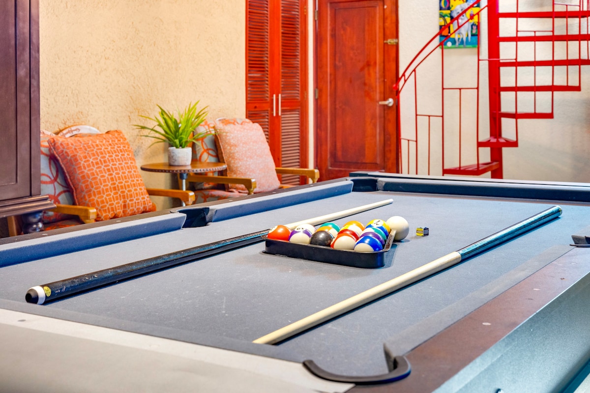 Piensa en una escapada corta o mes(es) para descansar/trabajar a distancia o explorar Baja. El diseño abierto permite un estilo de vida cómodo para solo una pareja, pero puede adaptarse a una reunión de hasta 10 personas. -- Incluye 3 dormitorios + un pequeño dormitorio con litera en la planta superior. + 5º dormitorio tipo estudio independiente en la planta baja con entrada independiente. -- Cocina bien equipada, barbacoa. -- Área de patio y piscina grande, nivelada y muy privada. Sin espacios compartidos. -- Ubicación ideal. Playa, restaurantes y tiendas a poca distancia a pie, a 5-10 minutos. Estacionamiento para 1 auto. ¡Ven y disfruta!