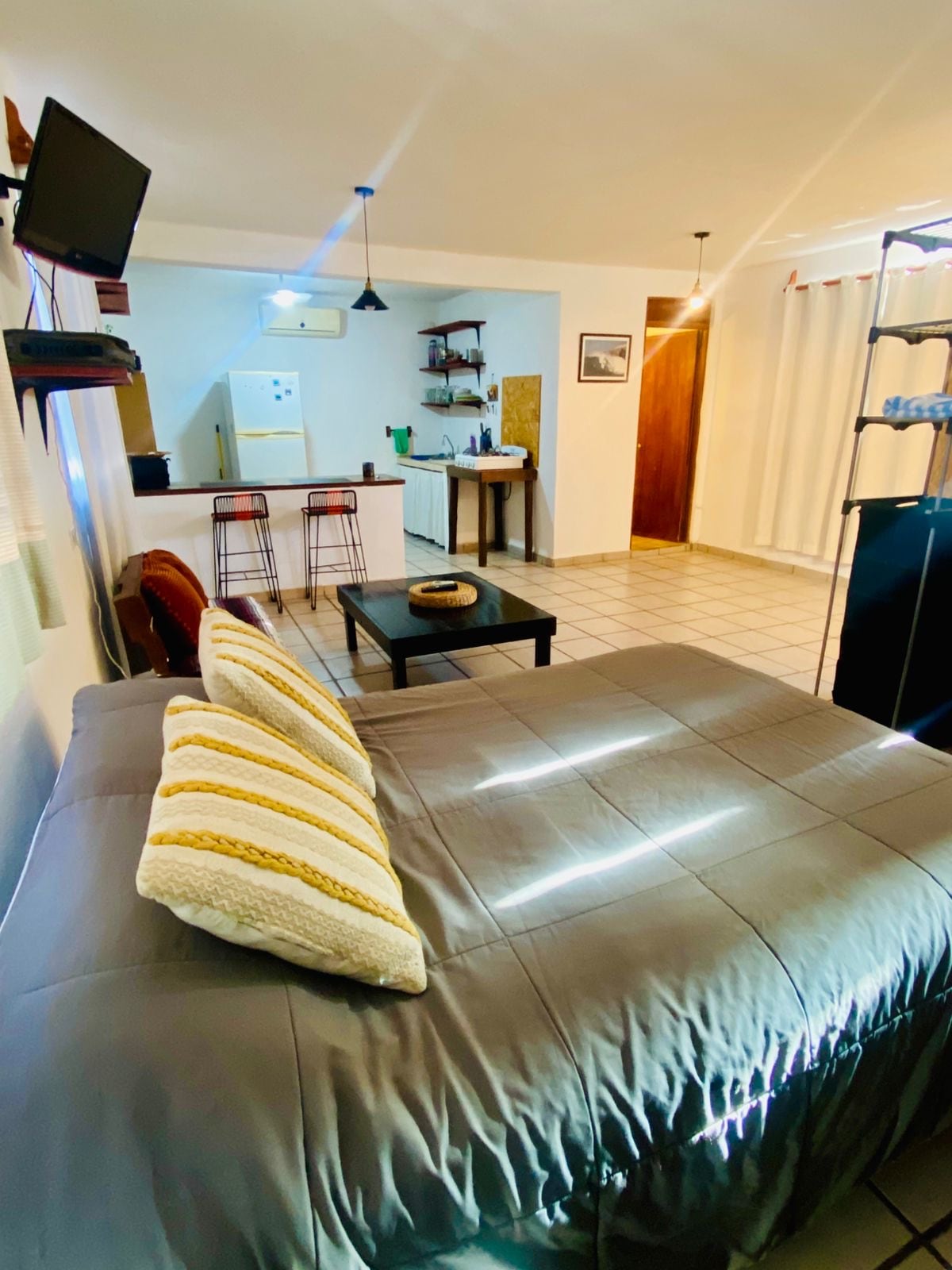 Estudio Cabo Lindo, Está ubicado a 2 min del Aeropuerto de San José (Aeropuerto de Los Cabos). Transporte público a 20 metros Es ideal para descansar antes o después de tu vuelo, de trabajo, negocio o placer. El departamento está equipado con cama queen, smart TV, wifi, aire acondicionado , cocina completa, comedor y sofá cama. Segundo piso(escaleras). Estacionamiento propio. A la vuelta encontrarás oxxo, farmacias, gasolineras y restaurantes. A 15 km del centro San José y playas