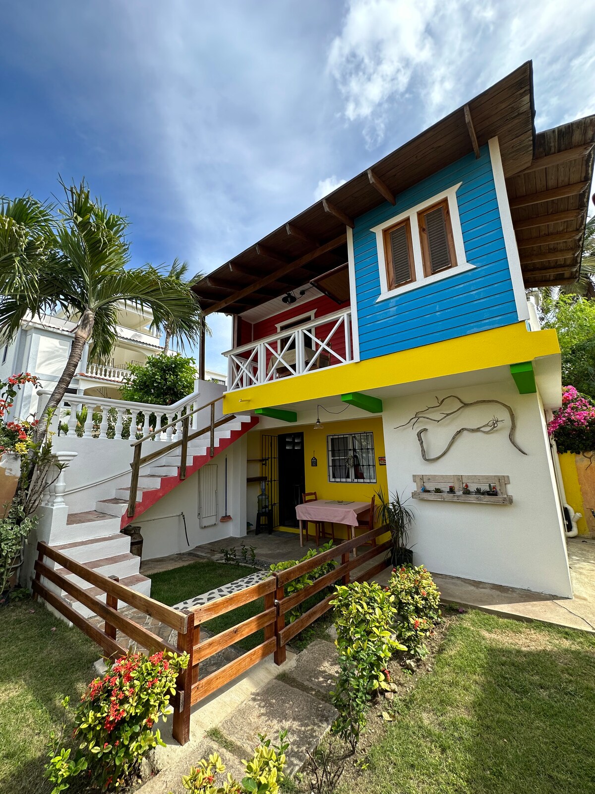 Te damos la bienvenida a nuestro departamento frente a la playa, donde el océano no es solo una vista, sino parte de tu experiencia diaria. Nuestro alojamiento de dos dormitorios y dos baños se encuentra justo enfrente de las aguas turquesas de la playa Bávaro, a solo cinco pasos de la arena. Ubicado en el tranquilo extremo de la franja, disfrutarás de un ambiente más relajado mientras te encuentras a pocos pasos de restaurantes, tiendas, panaderías y farmacias.