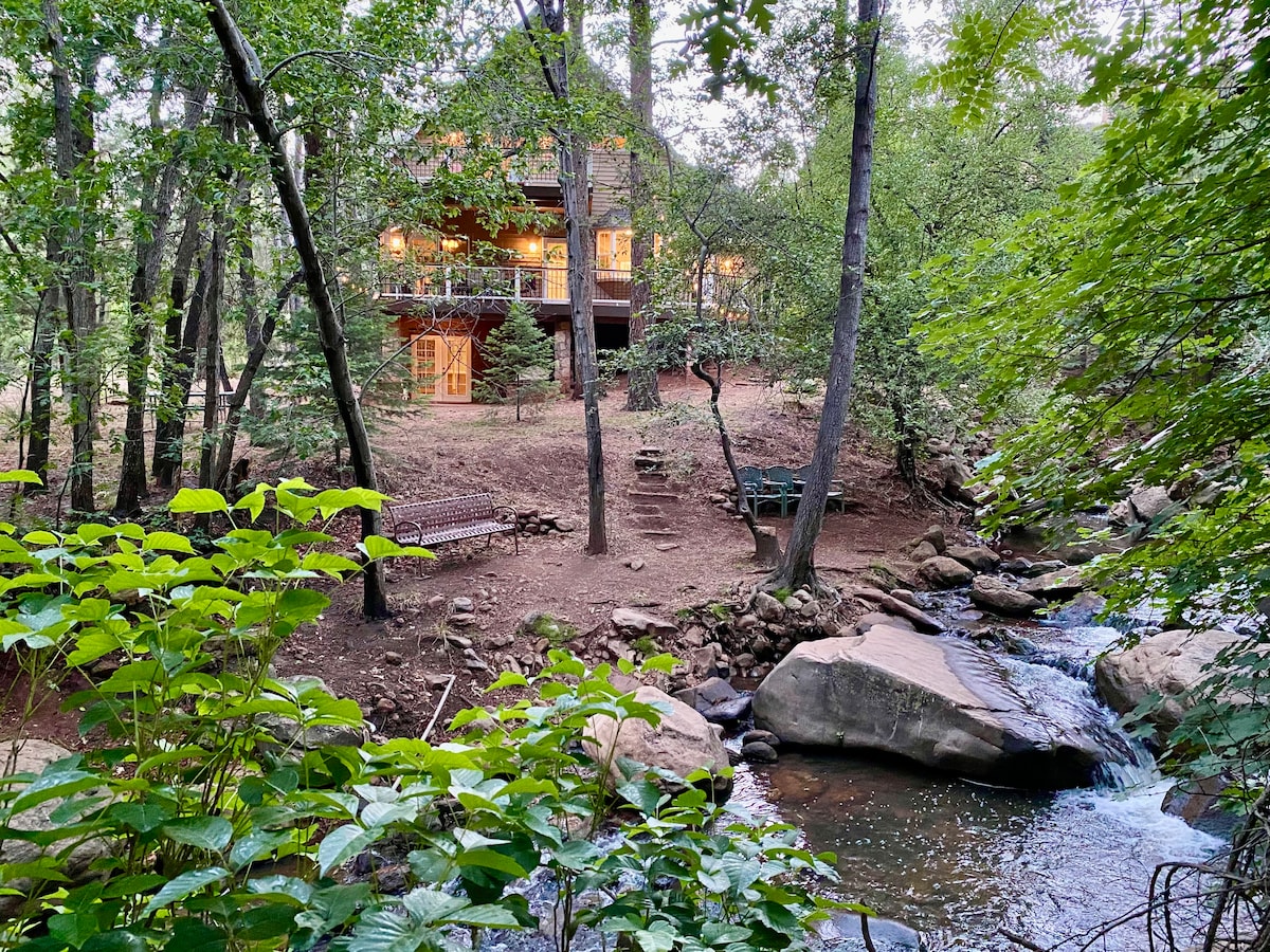 Tranquila cabaña de madera junto al arroyo en 1/2 acre. Escucha el sonido ondulante de una cascada desde la terraza o el patio trasero con vistas al arroyo Tonto. Cabaña de troncos recién renovada de 2 dormitorios, 2 baños y 102 metros cuadrados con acceso directo a Tonto Creek y cascada para pescar con senderos cercanos al Bosque Nacional de Tonto y al sitio paleo. Casa del árbol, columpio de disco y redes para cangrejos perfectas para niños mayores de 5 años. Paseos a caballo y paseos en pony disponibles en un establo cercano.