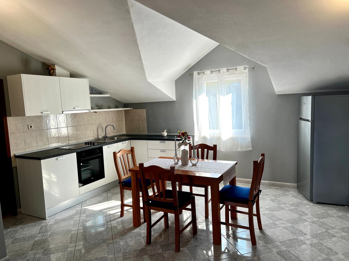 El ático Villa Marija se encuentra en la primera bahía pequeña y tranquila (primera fila al mar, a 30 m de distancia) cerca del casco antiguo de Korcula, por lo que la distancia a pie al casco antiguo de Korcula es de solo 10-15 minutos. No tienes que usar ningún vehículo mientras te hospedas con nosotros. Siempre tratamos de ayudar a que tu llegada y salida sean perfectas, por lo que esperamos a nuestros huéspedes en un puerto de Korcula el día de la llegada. El mar en la bahía está muy limpio, también hemos escuchado muchas palabras agradables sobre nuestras terrazas con vistas al mar, dichas por nuestros huéspedes anteriores.
