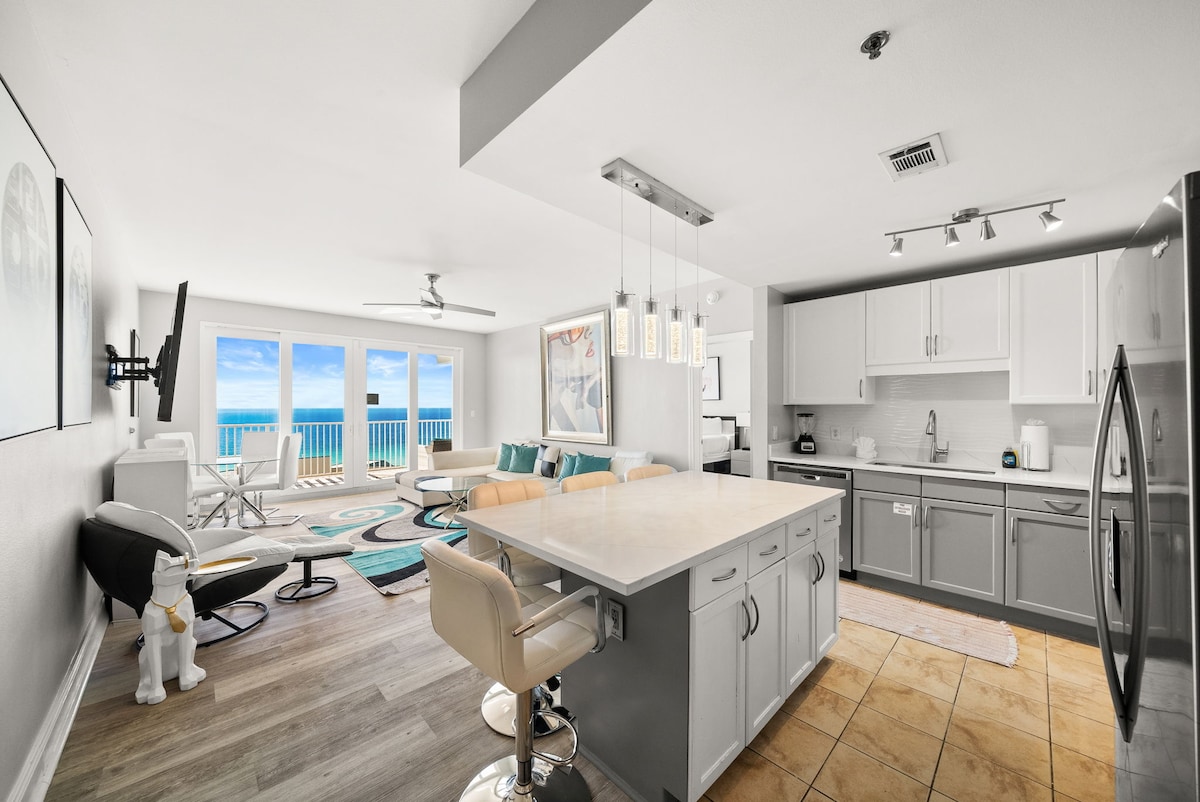 ¡SUNNY 17 está de vuelta! ¡El piso 17 da al Golfo! SÚPER HOSPEDADO Recién decorado esta espaciosa habitación con literas de 2 dormitorios/2 baños/privada te da la bienvenida con unas VISTAS grandes y hermosas del GOLFO. ¡Con controles deslizantes desde el dormitorio principal y el LR! El complejo vacacional es INCREÍBLE con restaurantes, 5 piscinas (1 climatizada por temporada) 2 jacuzzis de gran tamaño, 810 bolos, lago privado con espectáculos acuáticos, gimnasio de 2 pisos con vistas al GOLFO y más para que toda la familia DISFRUTE. ¡RESERVA AHORA para obtener las fechas que desees!