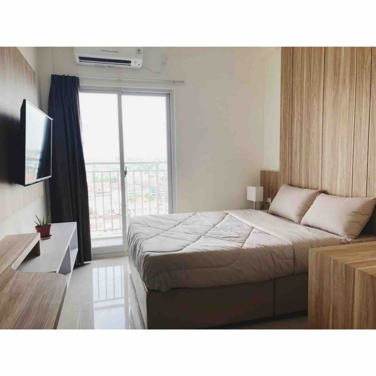 Unidad de estudio totalmente amueblada en Baloi Apartment Batam | 1 cama tamaño Queen con 1 baño | Vista a la piscina Piscina - Nivel 1 Estratégicamente ubicado en el corazón de Batam Island. Nuestro nuevo estudio contemporáneo está diseñado pensando en la comodidad y la elegancia, ofreciendo el refugio ideal para el ocio (parejas o solas) y viajeros de negocios. 💫