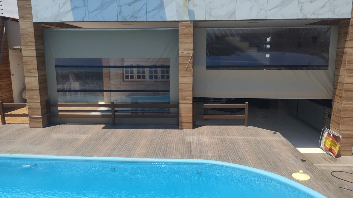 Cómoda casa frente a la playa en la playa de Camaçari, en Lucena-PB, tiene cuatro dormitorios, dos de los cuales están en suite. Agradable balcón arriba, donde puedes contemplar las olas del mar, tumbadas en una hamaca. En el jardín, además de un hermoso césped y piscina, hay un quiosco totalmente amueblado, donde puedes disfrutar de una barbacoa familiar.