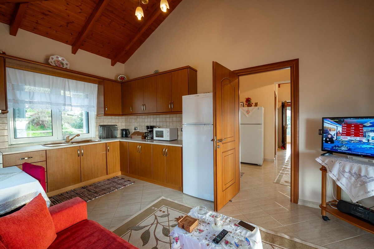 Te damos la bienvenida a nuestra tranquila villa familiar en Lukovë, donde el mar se encuentra con la montaña y las puestas de sol pintan el cielo. Este acogedor apartamento en el último piso cuenta con un techo alto de madera y vistas panorámicas al mar Jónico y a Corfú. Disfruta de la amplia terraza con una impresionante puesta de sol, cocina completa equipada, aire acondicionado, WiFi. Entra en un jardín con flores, cuidados con cariño por los cálidos y acogedores anfitriones, la Sra. Lida y el Sr. Mihal, conocidos por su cálida hospitalidad.