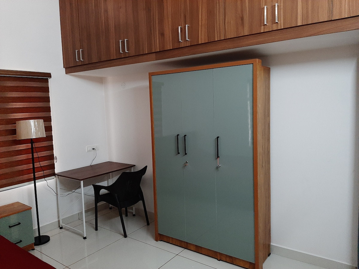 Aspectos destacados: - Amplio apartamento de 185 metros cuadrados con balcones en todas las habitaciones. - Departamento totalmente amueblado y listo para entrar a vivir. - Incluye un televisor de 55 pulgadas. - Wifi de alta velocidad de 200 Mbps con llamadas locales y de larga distancia ilimitadas. - Equipado con un contestador automático. - Viene con electrodomésticos esenciales: lavadora, nevera, purificador de agua, estufa/gas, horno microondas y calentadores de agua. - Convenientemente ubicado a solo 100 metros de la estación de metro de Edapally y del centro comercial Lulu.