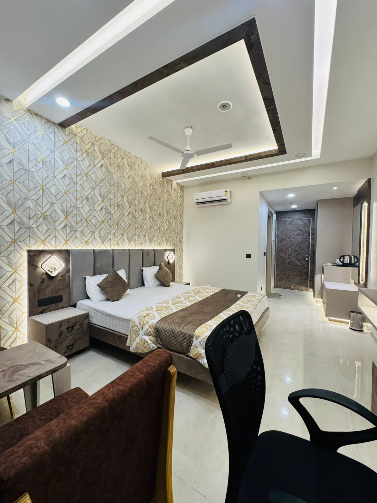 Escápate a un estudio de lujo totalmente privado y apto para parejas en el corazón de Gomti Nagar. Diseñado para disfrutar de una tranquilidad absoluta, con la comodidad de un acceso sin restricciones, este moderno refugio para vacaciones en casa cuenta con su propio cine en casa privado (pantalla HD de 6 pies con altavoces Bluetooth) y una exclusiva cama flotante iluminada para la máxima relajación. Con una ubicación perfecta, a solo 5 minutos del mercado de Patrakarpuram y a 10 minutos de todos los buenos restaurantes y centros comerciales de Gomti Nagar.
