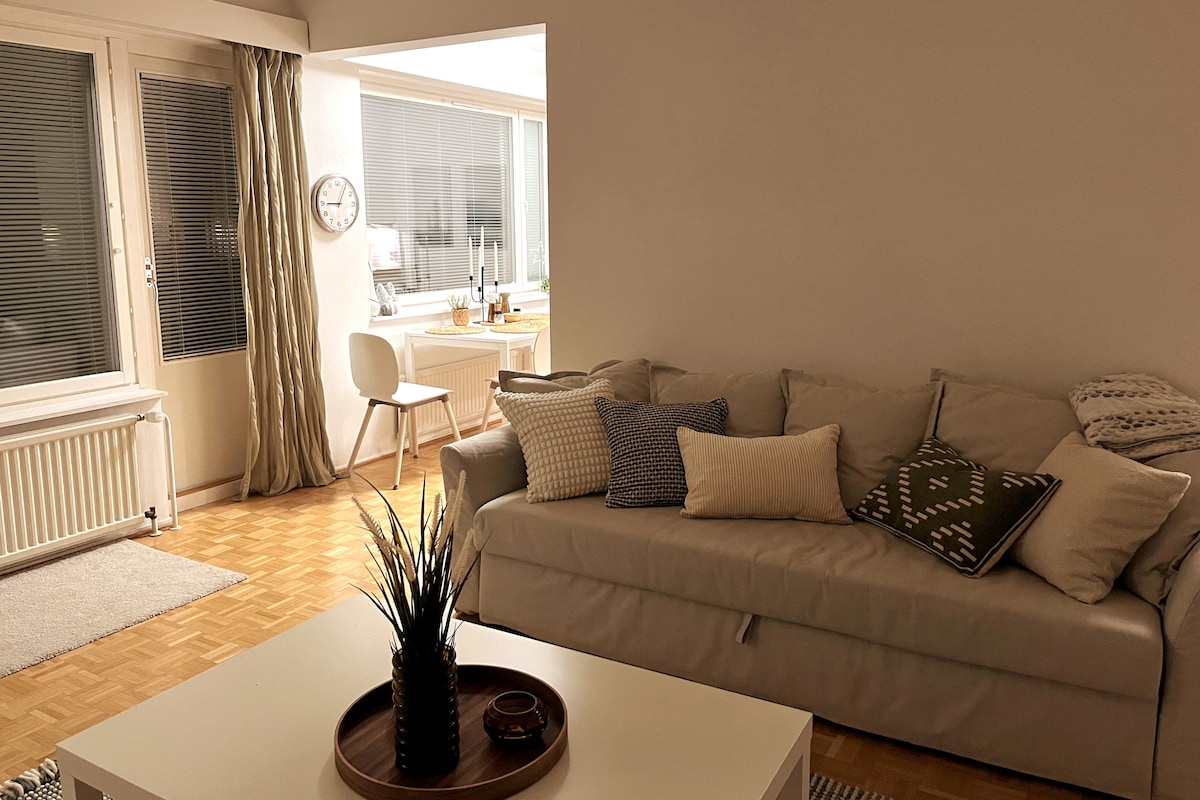 Este apartamento único se encuentra en un barrio tranquilo junto al río Kemi, a poca distancia (3 kilómetros) del centro de la ciudad y del círculo polar ártico (Pueblo de Santa). Tiene capacidad para cuatro adultos (máx.) o una pequeña familia y ofrece una vida cómoda y la posibilidad de explorar los lugares de interés y las actividades de Laponia (DIY). Aquí podrás relajarte y, si lo solicitas, te ayudará a organizar una estancia inolvidable en Laponia. Para empezar, puedes consultar la guía en mi perfil.