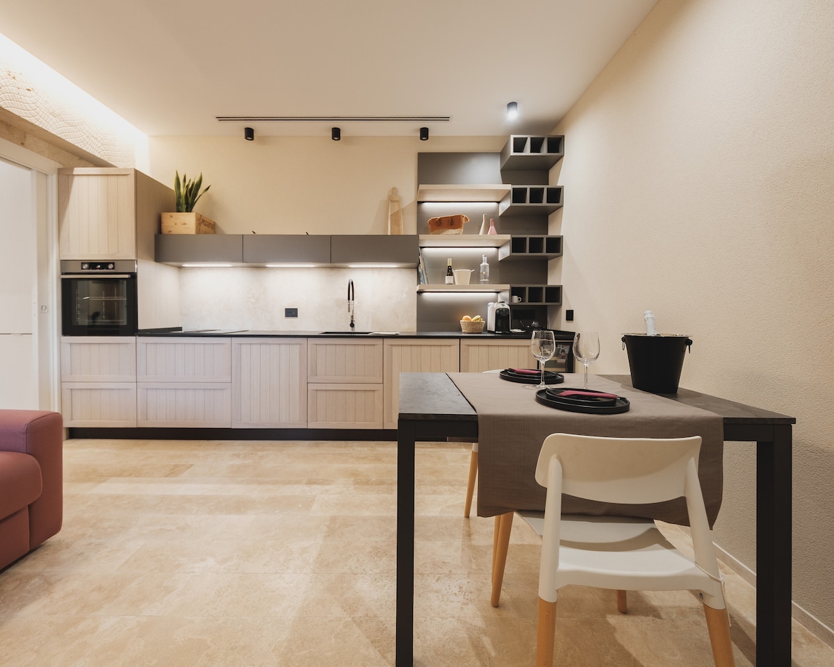 Apartamento independiente, recientemente reformado y cuidado hasta el último detalle, dispone de dos amplios dormitorios dobles con sus baños totalmente equipados; sala de estar con televisión inteligente de pantalla plana, conexión wifi, cocina con lavavajillas, horno y microondas; lavadora, calefacción y aire acondicionado. El apartamento está situado en pleno centro, rodeado de bares, restaurantes, tiendas, plazas e iglesias y a pocos minutos de las playas más bellas del Sinis.