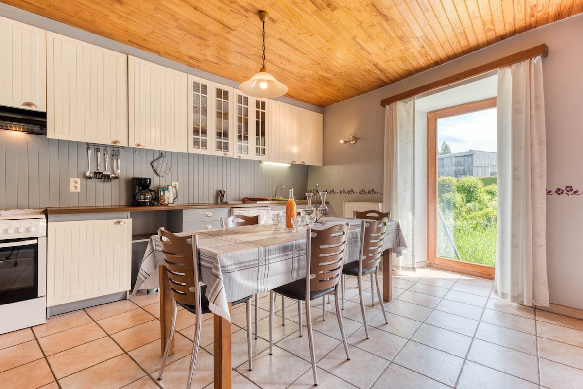 Casa de carácter en el castillo granja amueblada en el antiguo suministro. Calor y luz, gran comodidad. Situado en los valles de Ourthe y Laval, entre Bastogne y Saint-Hubert, aldea de 5 casas en medio de los prados y cerca del bosque. Mucho encanto. Casa cómoda y luminosa. Al borde de un arroyo, adosado a varias otras casas, en 2 niveles.
