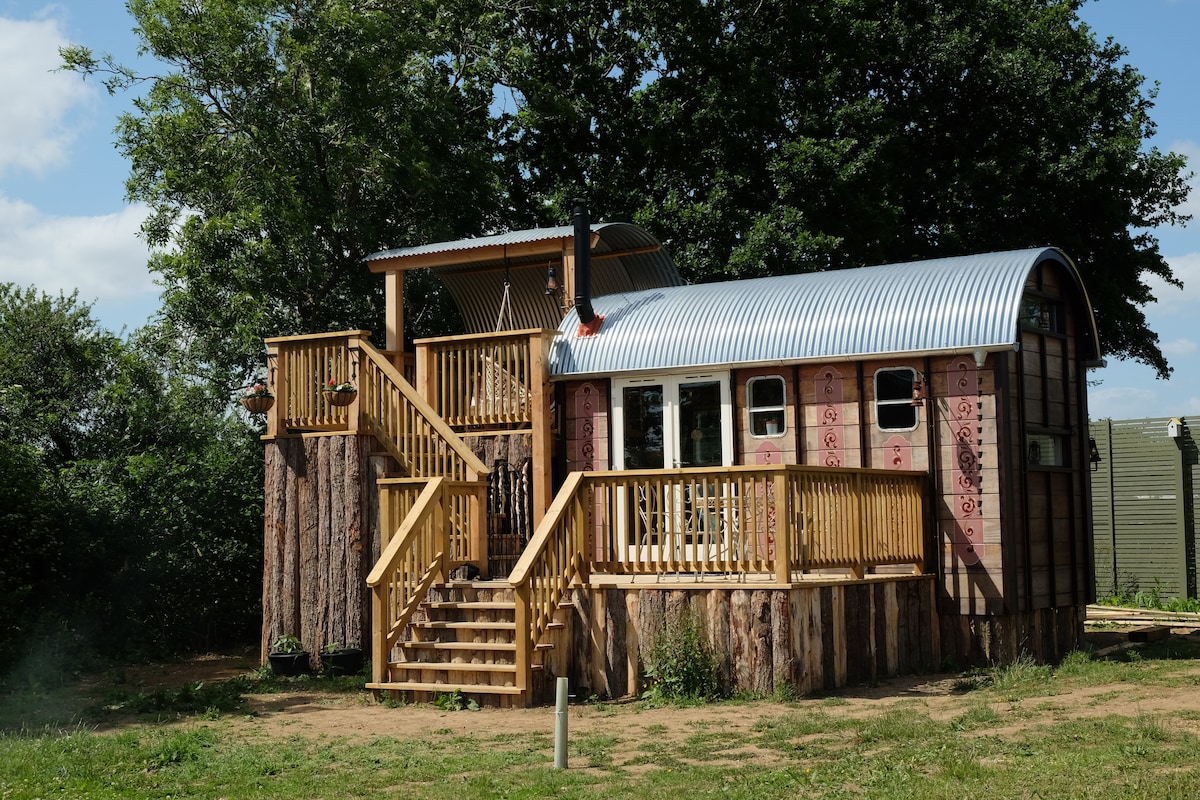 Dixie es un camión de caballos reacondicionado con mucho carácter y sorpresas escondidas en sus muchos niveles. Situado dentro de su propio prado de flores silvestres de medio acre con vistas perfectas de la próspera y en constante evolución vida silvestre. A un lado del camión hay un gran baño de lujo con ducha a ras de suelo. El espacio también alberga el inodoro de compostaje bien mantenido. Al otro lado del camión se encuentra el gran fogón completo con zona de estar, herramientas para barbacoa y plancha. Balcón envolvente de 4 m de altura. Lujo glamuroso.