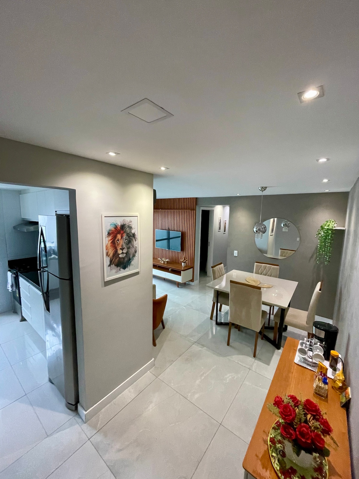 Aqui diversão e estilo se encontram. Localização privilegiada a poucos passos da orla marítima mais cativante do Nordeste. Tudo ao seu alcance: restaurantes, bares, farmácias, supermercados e shopping Center. Nosso apartamento foi cuidadosamente projetado para tornar a sua estadia memorável. Três quartos, com vaga de garagem, cozinha completa, máquina de lavar, ar condicionado, ventilador de teto, smart TV 60 pol. e a animada companhia da Alexa. Além de quarto com escrivaninha para trabalho.
