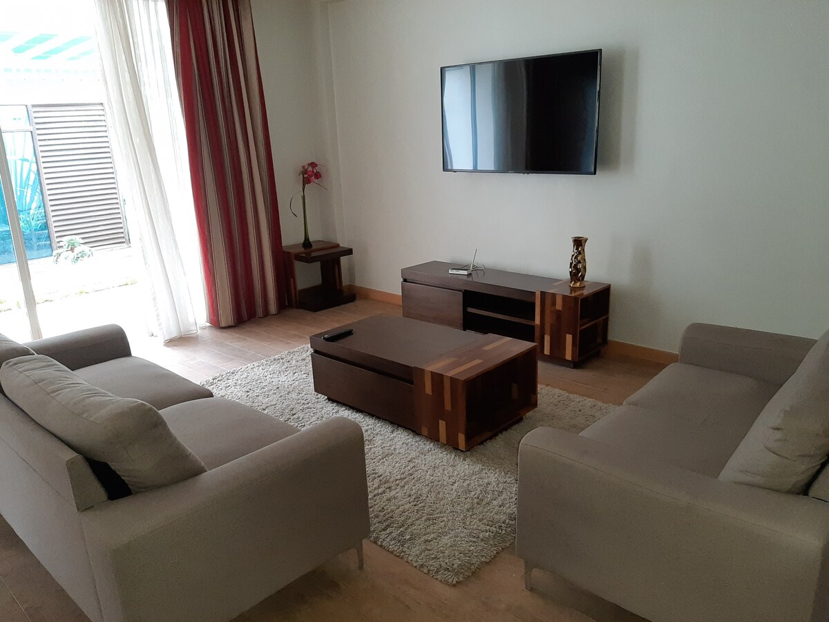 Relájate con toda la familia en este lugar tranquilo para hospedarte. Ofrecemos una cocina totalmente amueblada con amplias habitaciones y un balcón. La carretera tiene asfalto hasta la puerta. El departamento está muy cerca del aeropuerto JKIA y de la estación de tren SGR, tenemos un centro comercial cercano para todas tus compras.