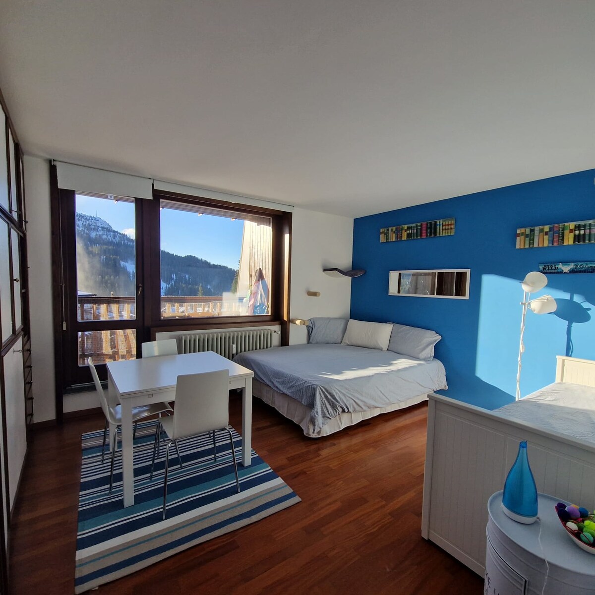 A MADONNA DI CAMPIGLIO - Frazione CAMPO CARLO MAGNO. ACOGEDOR ESTUDIO con balcón y hermosa vista de los Dolomitas. Adecuado para 1 o 2 personas. Ubicación estratégica: las pistas de esquí y a campo traviesa están frente a la casa. Almacenamiento de esquí. Las botas y el estacionamiento del condominio están incluidas en el precio. Supermercado, tabaco, escuela de esquí y alquiler de esquí a pocos metros de casa. Se puede llegar al centro de Madonna di Campiglio a pie, en autobús de esquí (parada a 100 metros) o en coche en cinco minutos.
