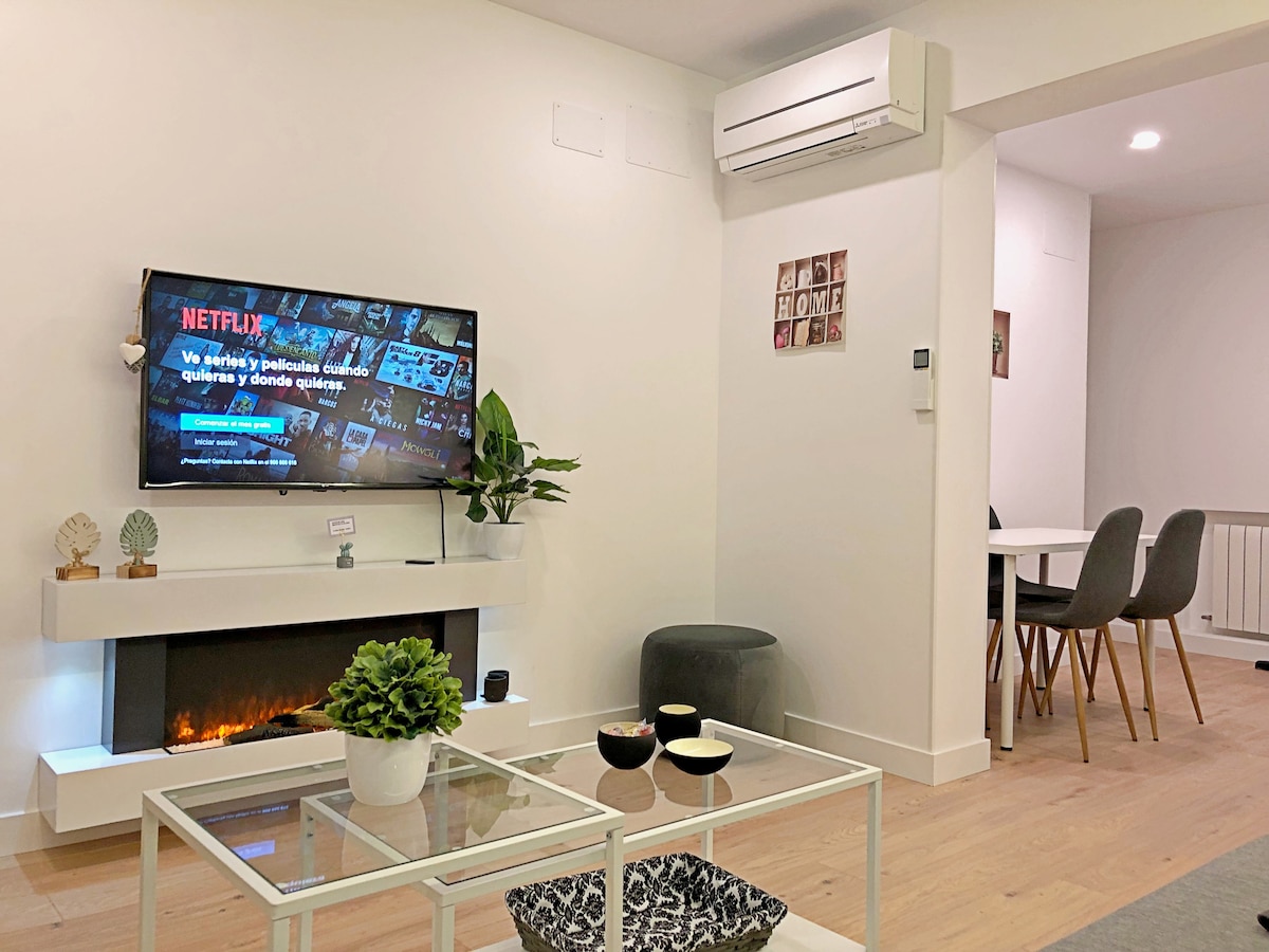 Alquiler de temporada, ideal para que nuestros inquilinos disfruten de estancias largas y cortas. EXCLUSIVO piso a 50m del parque del RETIRO y en el barrio más cool de tapas, IBIZA. El piso consta de salón con una moderna y acogedora chimenea, cocina totalmente equipada abierta al salón. Un bonito dormitorio principal con su baño en suite y un pequeño pero muy coqueto segundo dormitorio con su baño propio. Todas las estancias con ventanas y mucha Luz. REFORMADO INTEGRAMENTE.