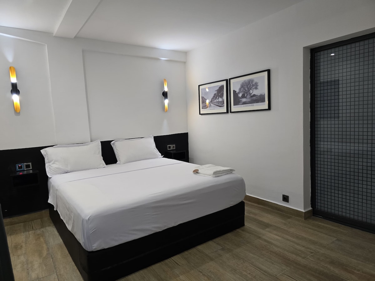 Le ofrecemos una villa en R+1 situada en el corazón del centro de la ciudad de Majunga cerca de todos los lugares de interés y comodidades. Su gran patio es un espacio donde los niños tendrán la oportunidad de jugar y expresarse, y está dedicado a las barbacoas en familia o entre amigos. Las dos habitaciones y la sala de estar están equipadas con televisión con acceso a Canalsat y Wifi. Ponemos a disposición de nuestros huéspedes un servicio diario de vigilancia y conserjería (limpieza, generador, sobrepresor de agua).