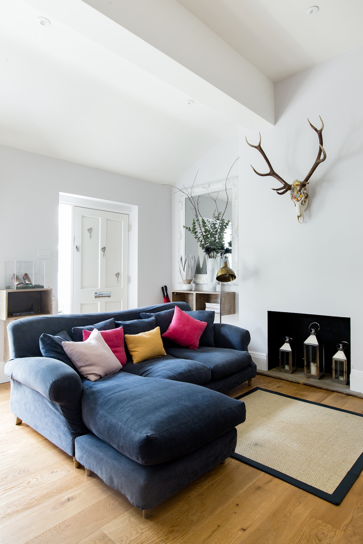 El granero está escondido en un patio privado situado en una calle pintoresca y tranquila que conduce hacia la calle principal del pueblo. Repleto de historia y carácter rebosante, se remonta al siglo XVIII. Los techos abovedados y las vigas viejas enmarcan los dormitorios que están amueblados con una cama ornamentada/sofá cama/ropa de cama de algodón egipcio en una combinación de rosas oscuras/grises, todo en un estilo chic en mal estado. Lámparas de araña, colcha de seda, pintura Farrow & Ball y artículos de tocador de Bamford Botanical de forma sostenible.