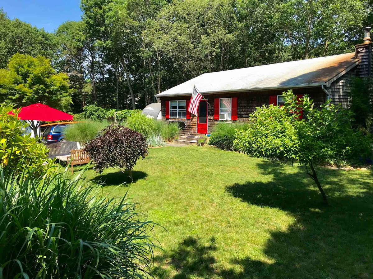 ¡Tómate un descanso y relájate en este tranquilo y pacífico refugio! Esta casa de campo de 3 niveles incluye estacionamiento en el garaje de nivel inferior para un auto y lavandería. El nivel principal tiene una cocina completa, una amplia sala de estar y medio baño. La habitación del segundo piso tiene baño privado. Situado junto a la casa principal, en 2,5 acres rodeados de bosque, con fácil acceso a senderos. Cerca de las playas del océano y la bahía, a medio camino entre East Hampton y Sag Harbor. ¡Perfecto para una pareja con aprecio por la naturaleza!