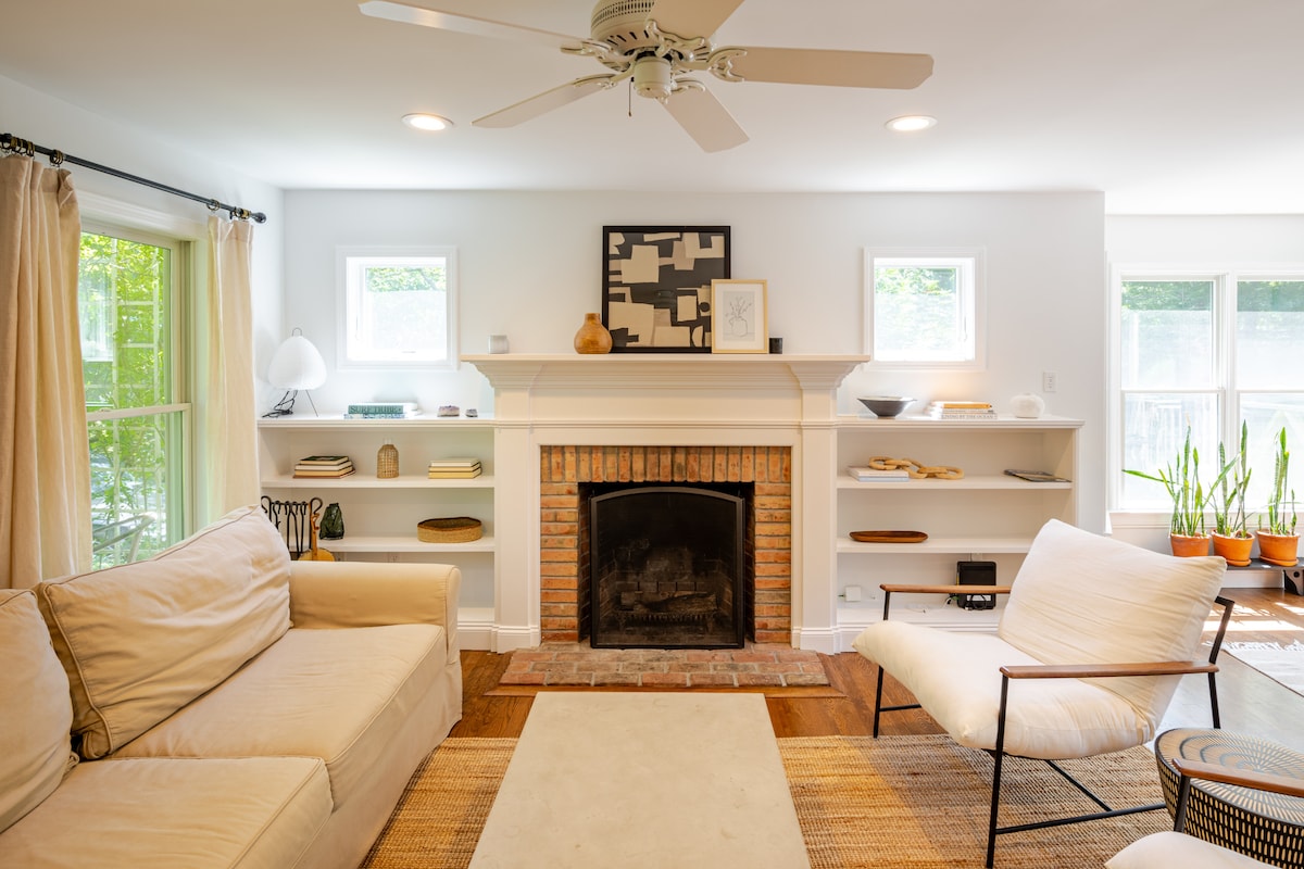 Relájate junto a la bañera de hidromasaje y la chimenea con vinos locales o camina hasta el pueblo para ir de compras y cenar. La casa está a pocas manzanas de Serafina y del famoso Nick and Toni's. Bicicletas de paseo de cortesía incluidas para moverse por la ciudad. El supermercado IGA está a la vuelta de la esquina y la parrilla de gas está en el sitio y lista para usar. La casa también está a poca distancia a pie de la estación de tren si vienes de Manhattan. El segundo dormitorio cuenta con una cama Murphy que se pliega fuera de la pared y sobre el sofá de la foto.