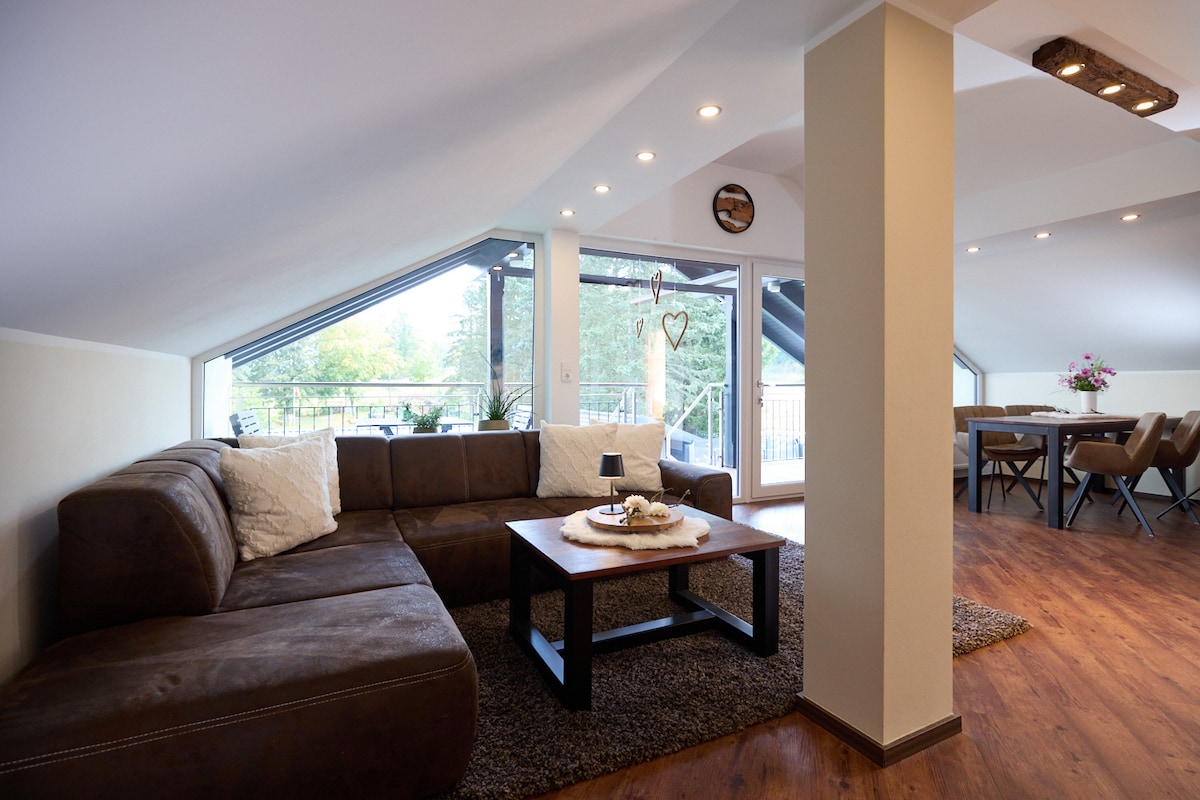 Visítenos en el corazón de Alemania en nuestro apartamento de vacaciones. Dispondrá de 60 m² con 1 dormitorio y 1 baño, así como una amplia sala de estar y comedor. El apartamento está situado en una granja reformada que se reabrió en verano de 2017. Vivirá en una antigua granja que ha sido recientemente renovada. El apartamento ha sido amueblado con buen gusto y tiene una entrada independiente. Con nosotros, la naturaleza pura le espera en un hermoso paisaje de media montaña.