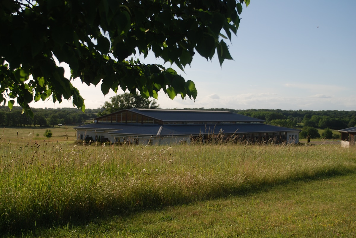 Un cadre naturel exceptionnel, situé au coeur même des activités équestres saumuroises. Le domaine est dédié à l'entraînement des chevaux de dressage et s'etend sur 12 ha aux portes de la ville de Saumur et à deux pas du Cadre Noir et du golf de Saumur. Idéal pour un repos en pleine nature et si proche de toutes les commodités. Les studios sont entièrement équipés pour deux personnes et situés plein sud. Profitez de la terrasse, mais aussi de la vue sur la chênaie en face de votre logement.