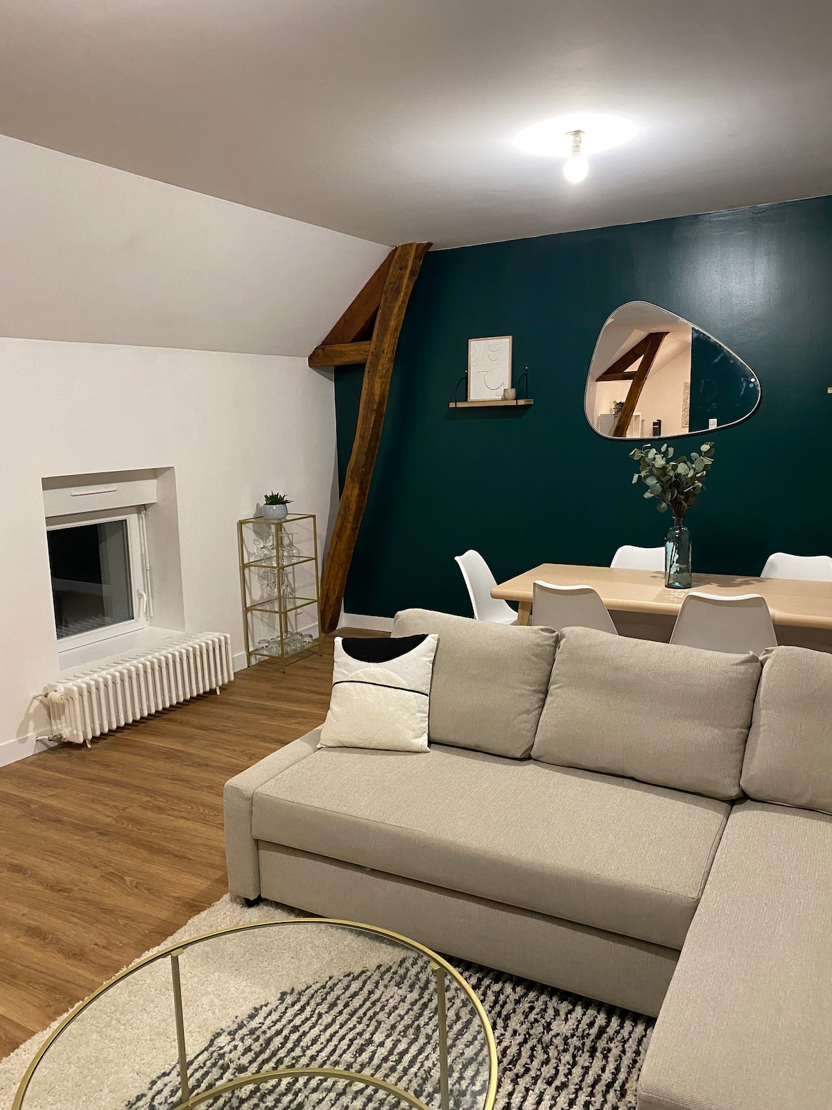 Discover "L'Oasis": 50sqm stylish duplex in Angers center. Includes a private secured garage in the building for total peace of mind. Indulge in the Spa area (sauna & whirlpool in-room) or a movie night with the projector (Netflix/Prime/Disney+) from your Queen Size bed. For longer stays, enjoy a fully equipped kitchen, modern bathroom and sofa bed in a beautifully decorated living space.