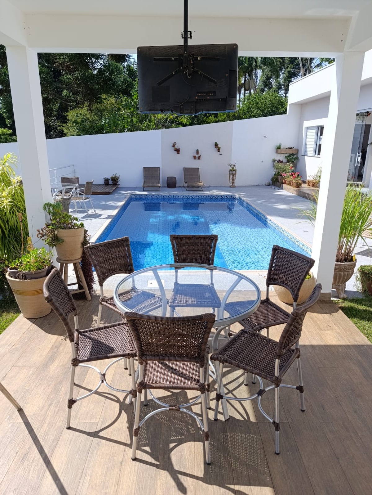 Ocio y descanso en un condominio cerrado a 40 minutos de São Paulo. Piscina con calefacción solar*, vista al lago, barbacoa, horno de pizza, con total seguridad. Hay 5 suites, un espacio de TV reversible para una suite más, un baño y una increíble área de ocio. NO ACEPTAMOS FIESTAS NI EVENTOS. Es necesario llevar ropa de cama y toallas. Frente al Outlet Catarina. Cascada dentro del condominio. *la temperatura del agua depende de la predominancia del sol en los días anteriores.
