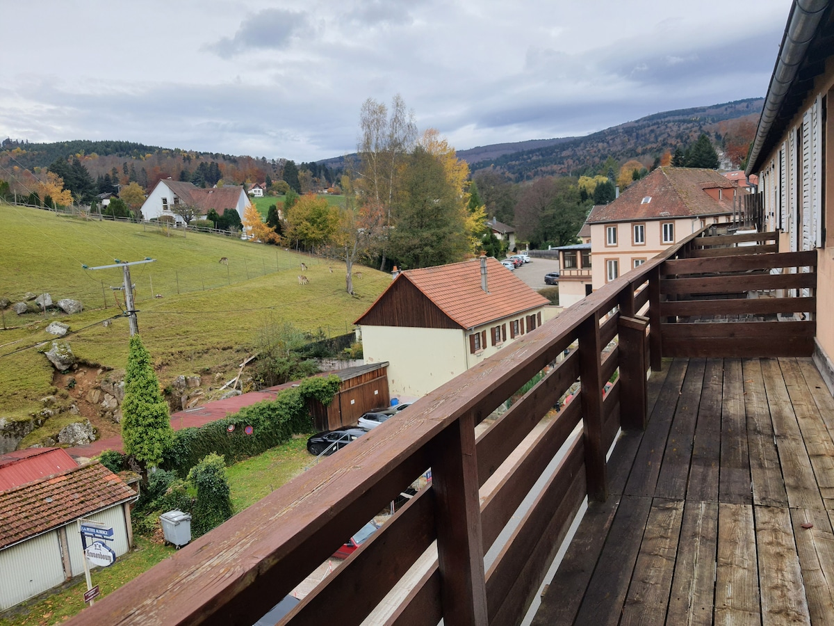 Calme et nature dans notre ferme vosgienne entièrement restaurée dans des matériaux authentiques. "Les pommes de pins" vous accueillent dans 70 m2 d'ambiance cosy dans un écrin de verdure. Idéalement situé entre Alsace et Vosges, à 700m d'altitude, vous séjournerez entre forêts et pâturages, bercés par le chant du ruisseau et des rossignols. Pour les amoureux de randonnée, et aussi proche des plus beaux villages d'Alsace, route des vins et Marchés de Noël. Cours de yoga le week end sur demande.
