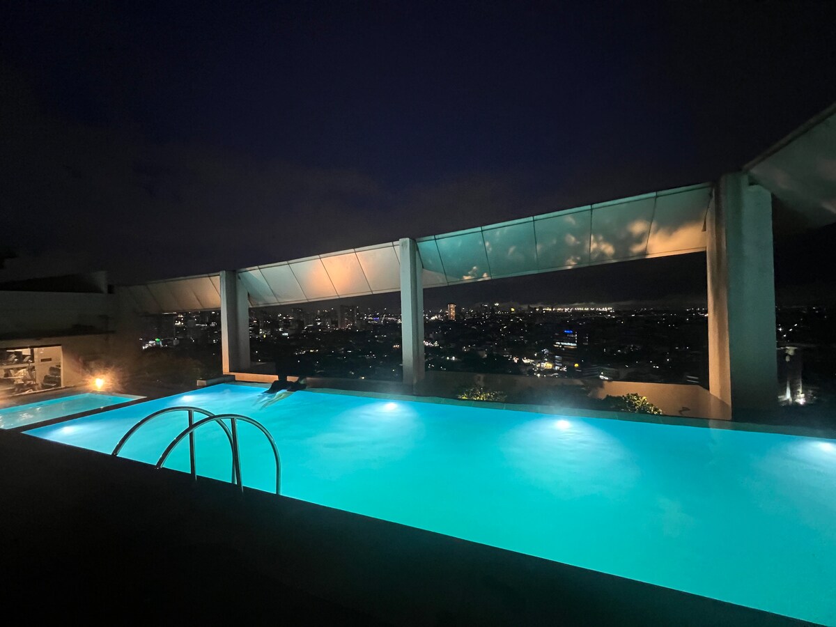 ¡La suite de 2 dormitorios más increíble de Milano Residences con una magnífica vista de la ciudad! ¡Patio ultraprivado con piscina privada! (¡Vaciamos y limpiamos la piscina para cada reserva!) Disfruta de internet rápido/Netflix mientras experimentas cómodamente el vasto espacio (100 metros cuadrados) que esta unidad tiene para ofrecer. La otra piscina compartida de la planta baja y la sauna están disponibles de martes a domingo, de 7:00 a 19:00 horas. La piscina permanecerá cerrada durante el día de limpieza (lunes).