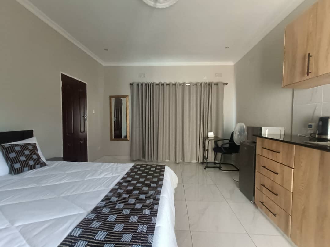 Enjoy a comfortable stay in this modern studio featuring a queen-size bed with mosquito net, air conditioning, ceiling fan, and private bathroom with shower. The kitchenette includes a stove, microwave, and fridge. Stay connected with high-speed Starlink internet and streaming TV. The apartment has solar backup for lighting, Wi-Fi, and TV, plus generator support during load shedding. Water backup ensures uninterrupted supply.