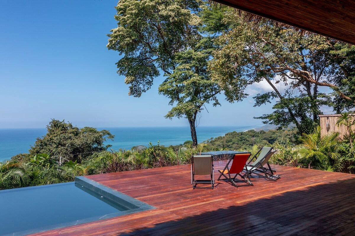Esta villa de estilo moderno de nueva construcción es un lugar perfecto para relajarse y disfrutar de las impresionantes vistas al océano y a la costa. Este moderno diseño abierto con puertas plegables totalmente abiertas te permitirá disfrutar plenamente del paraíso, pero con la comodidad de tu hogar. Nuestra villa se encuentra en la cima de la montaña y solo con acceso privado cerrado. Nuestros cuidadores de la propiedad viven en la propiedad para garantizar que nuestros huéspedes reciban el mejor servicio y seguridad y estén disponibles si es necesario en cualquier momento. ¡Te damos la bienvenida al paraíso!