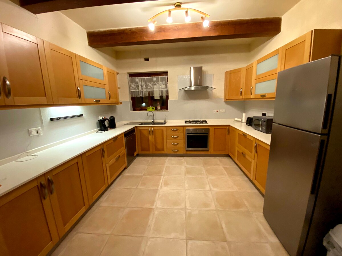 Casa de campo/villa independiente auténtica de 400 años de antigüedad (5000 metros cuadrados), recientemente renovada con altos estándares. Está encaramado en terrenos elevados con vistas completas del valle/playa de Wied il-Ghasri, el faro de Ta Giordan, una antigua capilla y el mar. La propiedad tiene entrada privada/cochera. Los terrenos ofrecen tranquilidad completa y vistas increíbles. ¡Pollos de corral, gallos, alpacas, cabras, gatos amistosos, 2 pavos reales, 2 guacamayos de alas rojas y 2 monos te harán compañía!