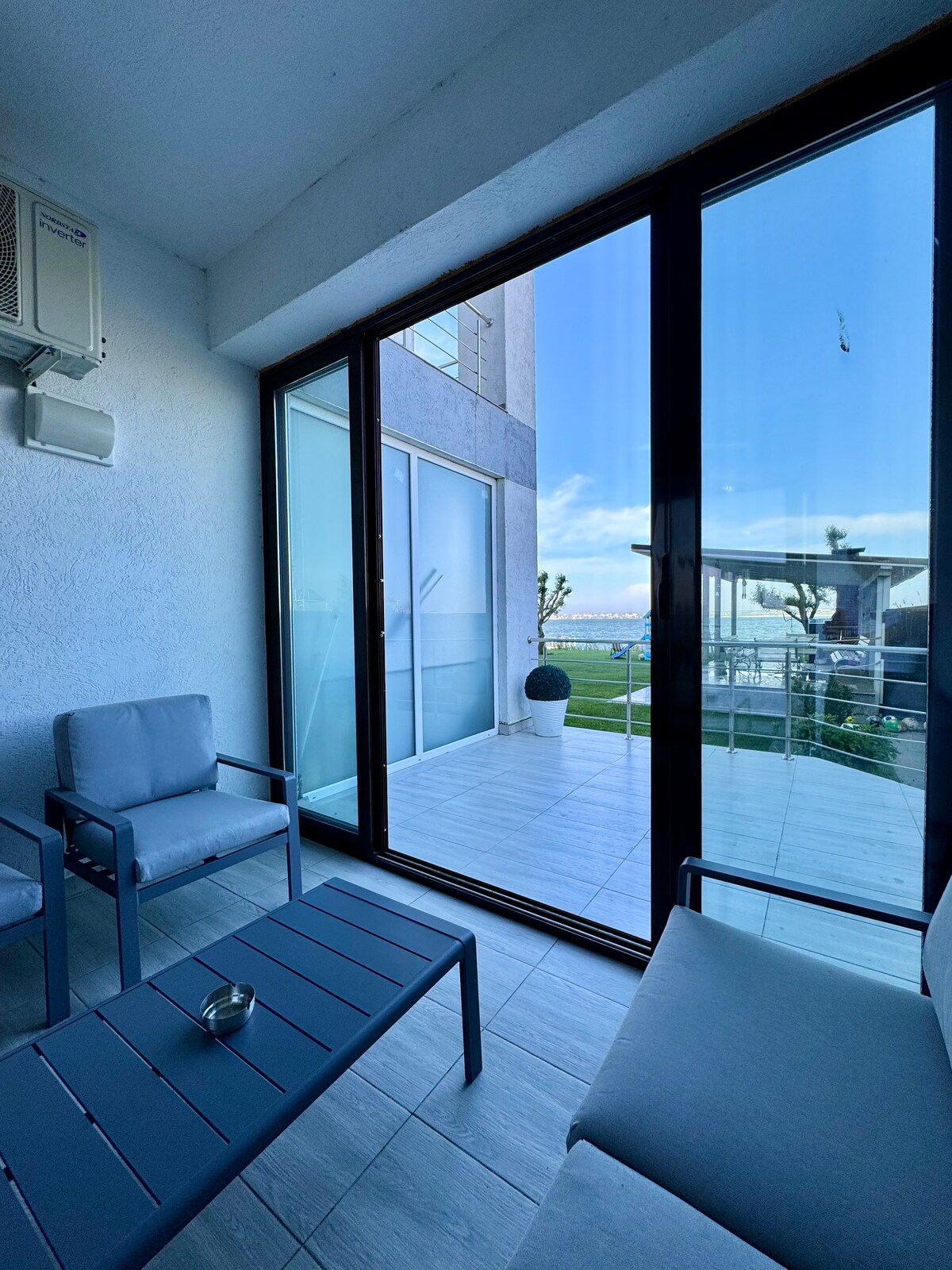 Apartamento Tequila Sunrise – Tu lugar de descanso junto al mar | Mamaia Nord Despiértate con el mar en tu patio trasero y termina el día con un cóctel en tu terraza privada de 60 metros cuadrados. A solo 40 metros de las playas de Mackerel y Manor, este apartamento en el sexto piso te ofrece asientos en primera fila con impresionantes vistas al mar. La terraza es tu sala de estar al aire libre: cómodas sillas de descanso, tumbonas, plantas exuberantes y esa brisa salada que te hace olvidar qué día es. ¿Bares, comida y ambiente veraniego? Todo a un paso.