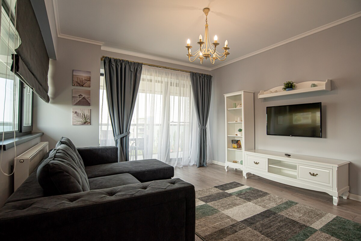 New Apartment with sea view and pool access is situated right next to the beach in Alezzi Beach Resort, in one of the best areas in Mamaia. You can sip your coffee in the balcony, watch the sunrise and feel the Black Sea breeze. The kitchen is fully equipped and you are welcome to cook. Nearby you can find the most diverse restaurants, coffee shops and clubs. Our guests will have also free access to the indoor and outdoor pools, fitness gym, SPA, playgrounds and pool for children.