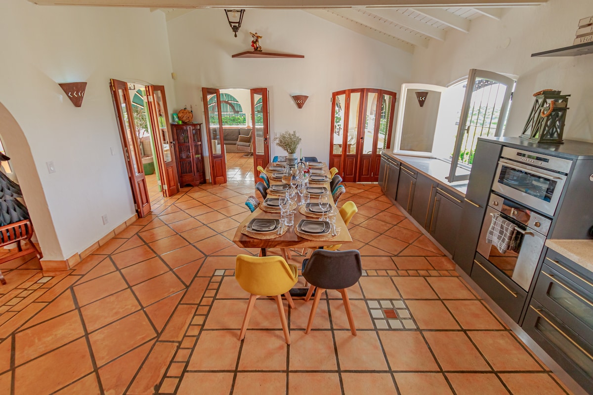 La villa gigante más espectacular y elegante del Caribe en esta colorida isla. Deslumbrante espacioso. Diseño de interiores sofisticado presentado en revistas de estilo de vida. Vistas para morirse. Galería de calidad de obras de arte moderno. Situado en la cima de la ladera de la elegante y segura Jan Sofat en la bahía de Spanish Water. Limpieza diaria, servicio de toallas y electricidad incluidos. Todos tus huéspedes juntos en una villa de jet-set. Para tu retiro de yoga, reunión de aniversario, sesión de fotos de moda o estancia de lujo con la familia.