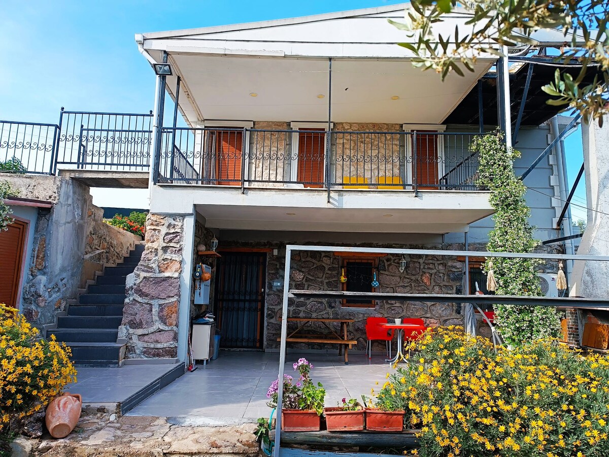 Cabaña de piedra y tierra en las montañas Bozdağlar, rodeada de bosques de pinos y cerezos. Ubicado en un pequeño asentamiento en la ladera. Perfecto para relajarse, pasear y volver a conectarse con la naturaleza, para una escapada de fin de semana, como una parada de viaje por carretera o una estancia más larga para trabajadores remotos. Disfruta de paseos por la naturaleza, noches estrelladas silenciosas, una barbacoa en el jardín, una terraza con ducha al aire libre y un monitor/TV inteligente, fuera de la red en espíritu, pero totalmente cómodo. Una excelente base para explorar el Egeo rural.