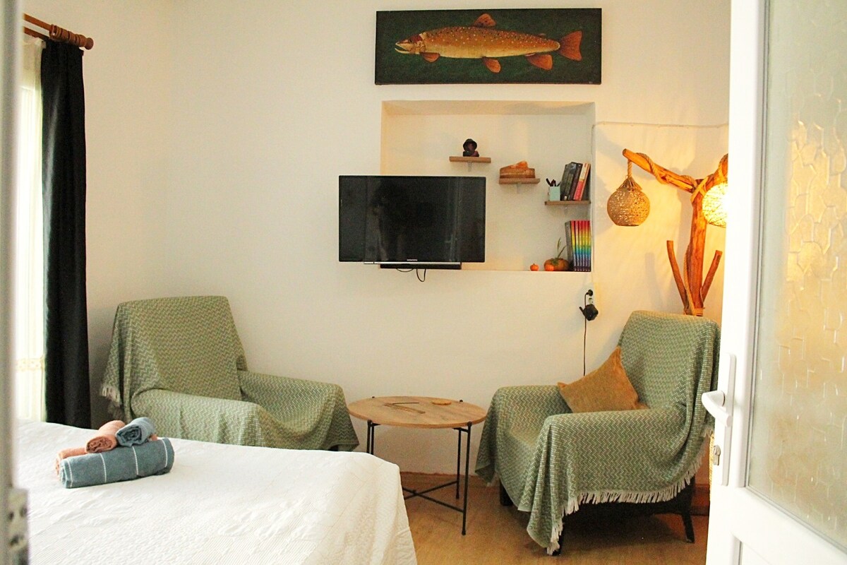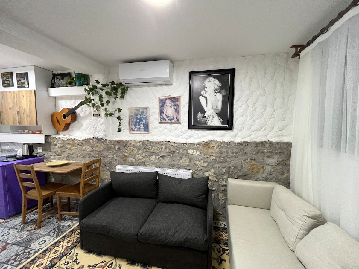 ¡Descubre Esmirna con nosotros! Alójate en nuestra encantadora casa histórica de piedra situada en el corazón de la ciudad, pero lejos del ruido. Disfruta de una estancia sencilla y cómoda con una experiencia única de baño turco y un jardín que se asemeja a un pequeño bosque lleno de sonidos de pájaros. ¿Qué nos diferencia? Nuestra casa es la inspiración de una novela llamada «DOM», que añade un toque especial a tu estancia. ¡Sé nuestro huésped y experimenta el privilegio de dormir en una novela!