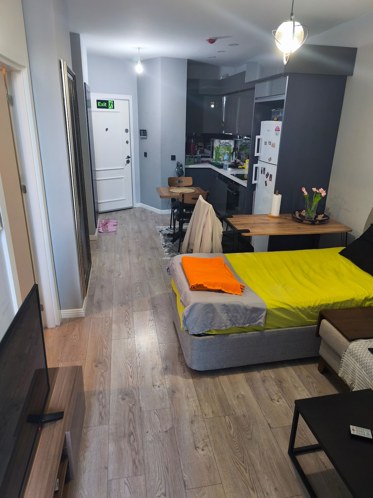 Zemin katta balkonlu, rahat 1+1 dairemiz! Oyun alanının hemen yanında, çocuklarınız için mükemmel! Her iki kanepe de yatağa dönüştürülebilir, yani yeterli alan. Konaklamanız boyunca kendi özel otoparkınız ve yüzme havuzu ve spor salonu gibi binanın tüm olanaklarından yararlanabilirsiniz. Tesis, 7/24 güvenlik personeli ve kamera gözetimi tarafından korunmaktadır.