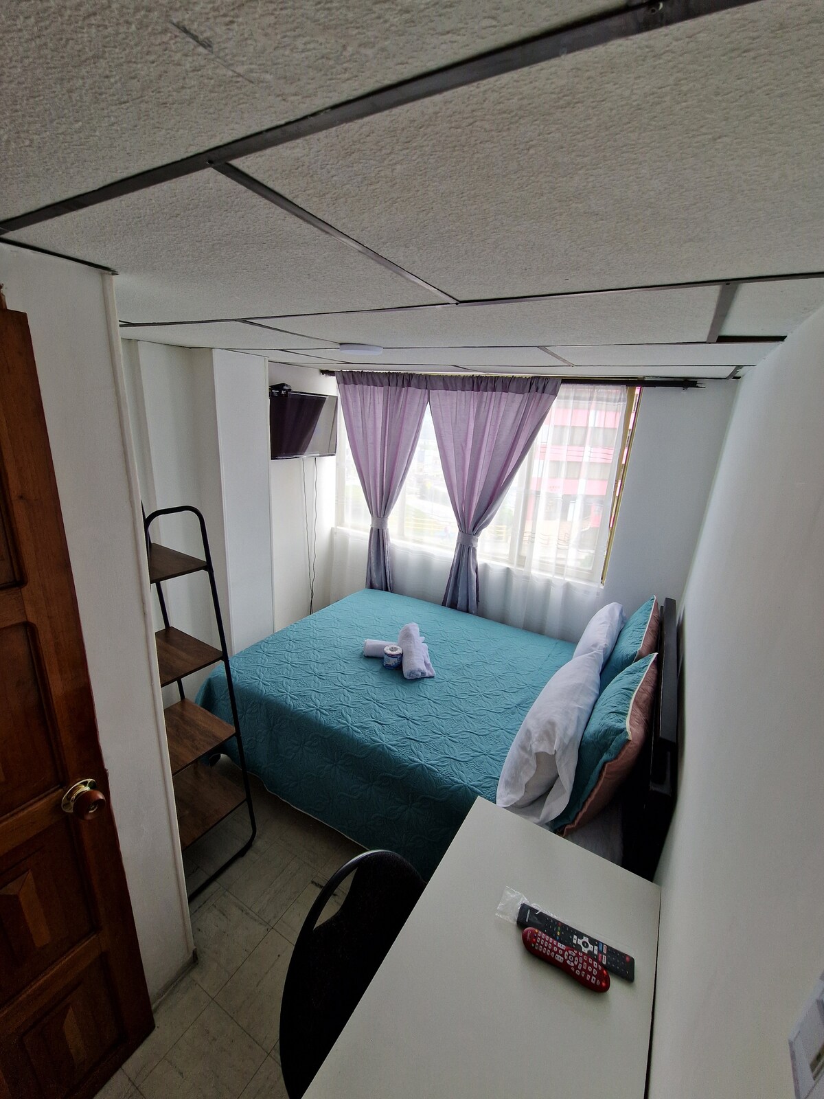 Apartaestudio en 1 piso. Perfecto para dos personas , ideal para quienes buscan cercanía y fácil acceso a la zona del centro y de Chipre. El espacio que disfrutarán: 1 Habitación con cama doble, adicional 1 sofá cama para dos personas mas,clóset, Sala, baño,cocina y barra americana, solo para uso exclusivo de los huéspedes. Cuenta con agua caliente,Wi-fi veloz y garaje hasta para dos motos. Estamos ubicados cerca del parque de las aguas, la plaza de toros, restaurantes y locales comerciales.
