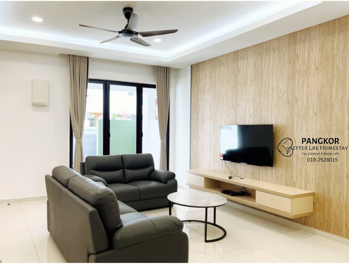 Alójese en el centro de la acción en este lugar único. El nuevo diseño minimalista de alojamiento familiar en familia, espacioso y cómodo, 4 dormitorios y 3 baños, excelente ubicación, a 3-5 minutos a pie de la playa. Hay tiendas de conveniencia, tiendas libres de impuestos y restaurantes a menos de 500 metros, que es un lugar ideal para que tú y tu familia viajen. Es la mejor opción para viajar a la isla de Pangkor. . Adecuado para 12 personas (más colchones por un cargo adicional, hasta 2 colchones)