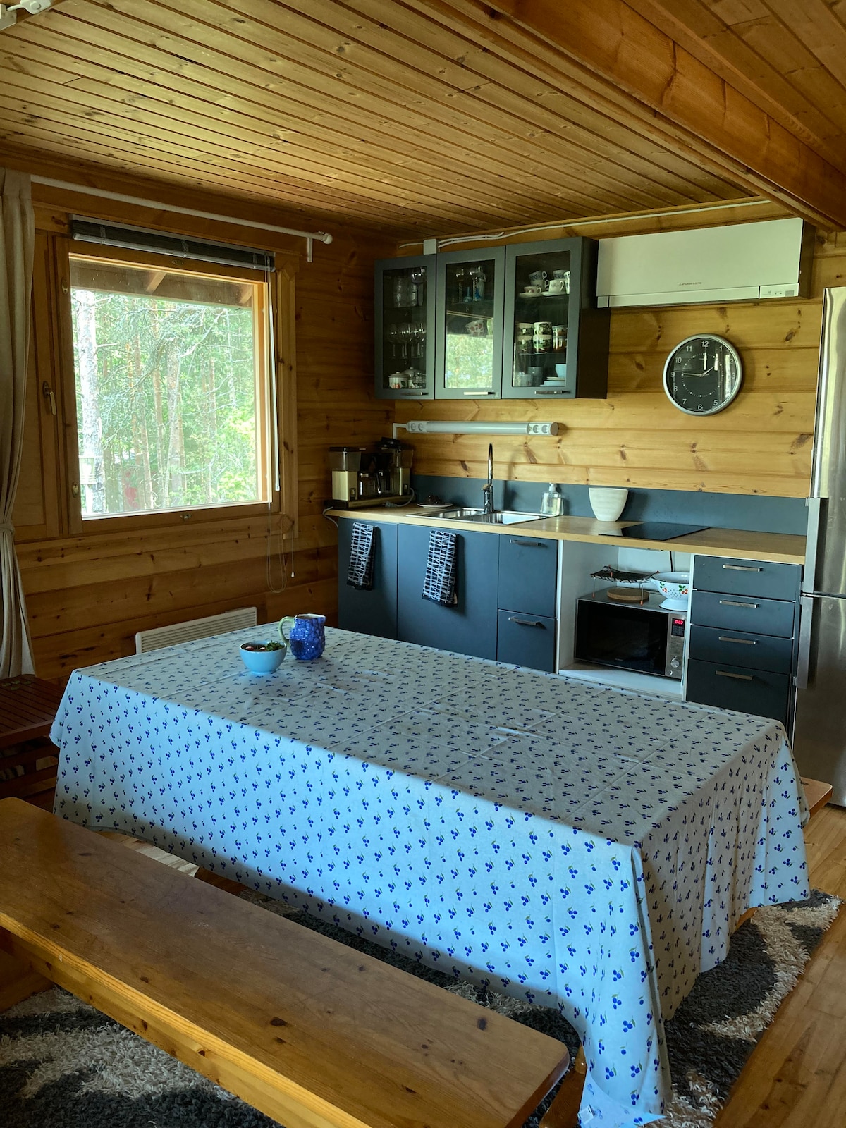Bienvenido a un acogedor refugio enclavado en plena naturaleza a solo 15 minutos de la ciudad de Turku. Cabaña de un dormitorio con una cocina y un comedor amplios. A tiro de piedra encontrarás nuestro oasis de casa de playa completo con un muelle privado y sauna. Después de un día de exploración, relájate con una ducha caliente antes de subir al pequeño bote de remos para disfrutar de una noche tranquila. Tanto si buscas una escapada romántica como una escapada tranquila con amigos, nuestra combinación de cabaña y casa de playa promete una estancia inolvidable.