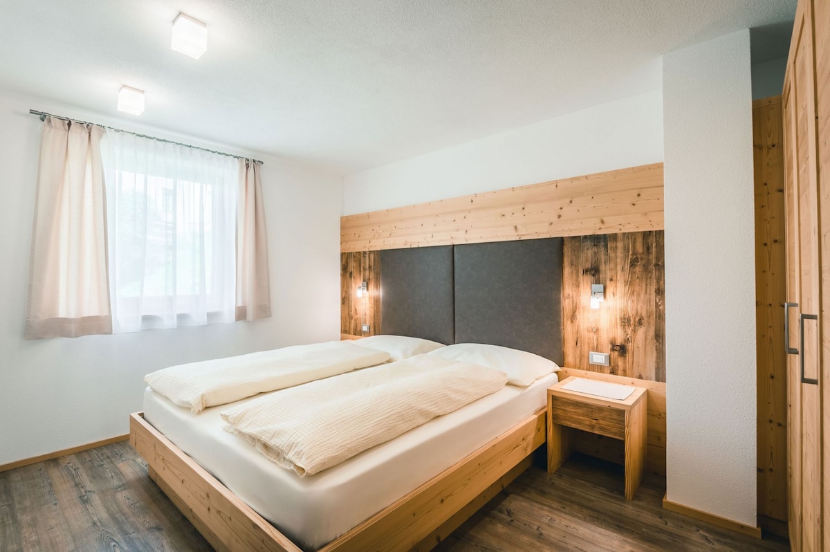 Die neue komfortable Wohnung befindet sich im zweiten Stock und verfügt über zwei Schlafzimmer mit Balkon, ein Wohnzimmer, ein Badezimmer mit Dusche und eine Küche, die mit allem modernen Komfort ausgestattet ist. Der sonnige Balkon wartet mit einer einzigartigen Aussicht auf die Dolomiten auf. Das Mitbringen eines Haustiers ist nicht erlaubt.