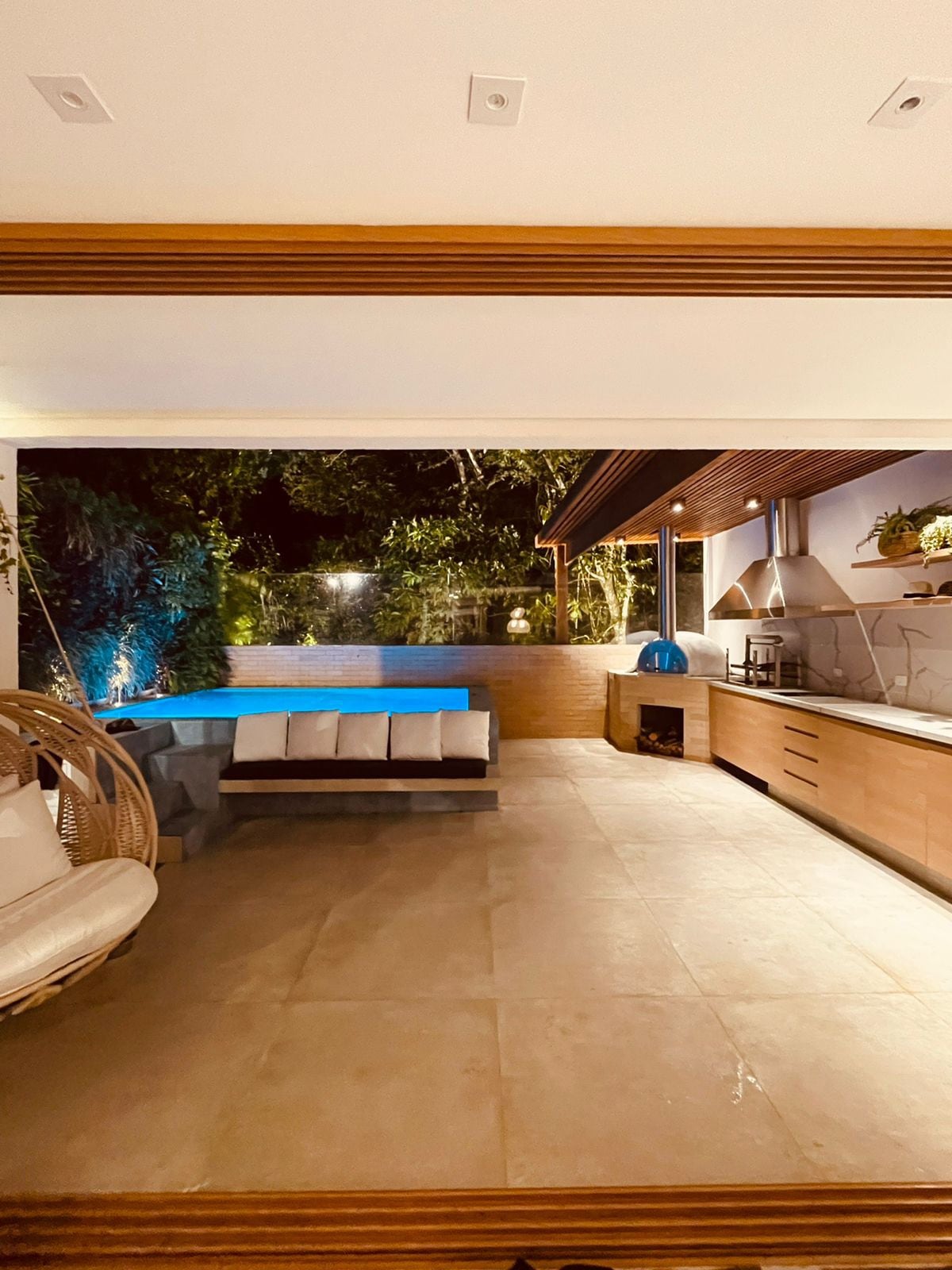 Casa de alta gama recién construida en una comunidad cerrada en Maresias, cerca de la playa. Tiene una piscina privada CLIMATIZADA, mesa de billar, barbacoa, horno de pizza, 5 dormitorios, 3 suites dobles, 1 dormitorio con 5 camas individuales y 1 con 3 camas individuales, aire acondicionado en todos los dormitorios y sala de estar, TV por cable, wifi y 3 espacios de estacionamiento. Hermosa vista del bosque atlántico, condominio con infraestructura de bar y restaurante, servicio de playa, gimnasio, canchas de tenis y piscinas.