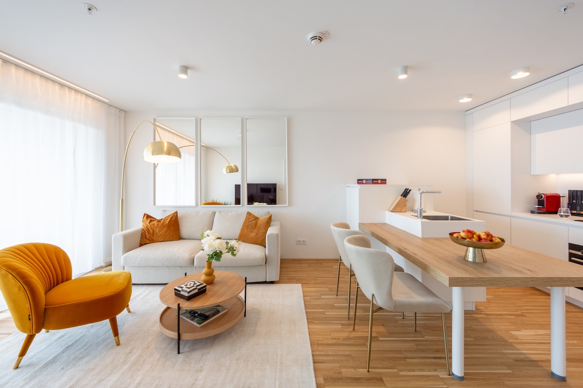 Estaremos encantados de recibirte en nuestra moderna y altamente equipada suite en Mödling. Llegarás a la estación de tren de Mödling en solo 2 minutos a pie. El centro de la ciudad de Viena está a solo 25 minutos en tren. Los viajeros de negocios disfrutarán de que el parque empresarial en Wr. Neudorf está a solo 7 minutos en coche. El apartamento está equipado con todas las comodidades deseadas: cocina con lavavajillas, lavadora, pantalla plana, cama con somier, sofá cama (140 cm).
