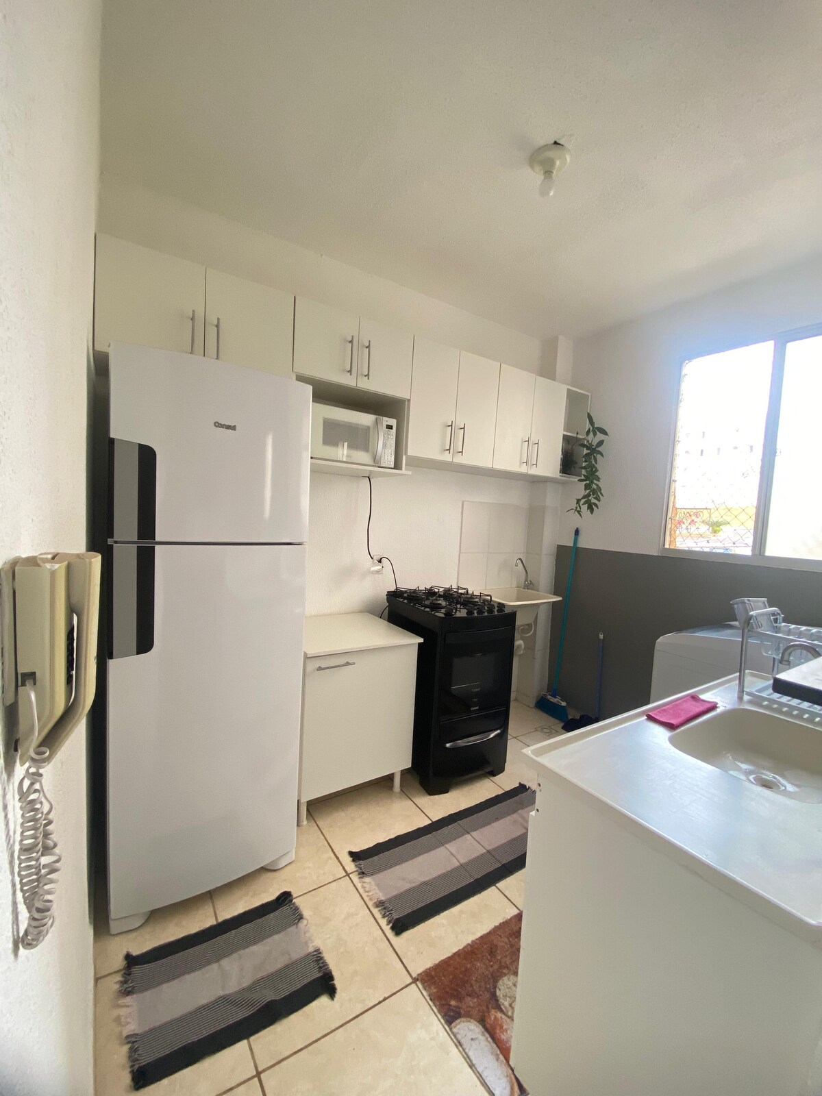Acerca de este apartamento Cerradura electrónica, estancia corta, decorado exactamente como en las fotos, puede alojar hasta 4 personas. ¡Utensilios básicos para el hogar para que puedas cocinar, estufa, microondas, lavadora de ropa, ropa de cama, armario, TV, sofá y un vestidor! Todas las ventanas tienen mosquitero. Tiene una excelente ubicación, supermercados, seguridad 24 horas en el condominio, el apartamento está en la planta baja y tenemos un espacio para el auto dentro del condominio del apartamento, el barrio es tranquilo.