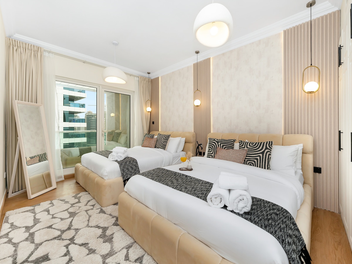 TE DAMOS LA BIENVENIDA al corazón de JBR❤️ Te damos la bienvenida a La VIE... El edificio está situado junto al mar. 🌊 - Tiene su propio ACCESO PRIVADO GRATUITO A LA PLAYA. - La piscina principal con vista panorámica al mar y piscina para niños. - Cove Beach Club disponible (las condiciones de visita pueden cambiar). El apartamento es muy espacioso (85 metros cuadrados). La idea de este lugar no es solo comodidad, moda, vida de lujo y atención a cada detalle. Los 3 deseos principales para nosotros son: •Aquí te sientes como en casa •Crear recuerdos inolvidables •Hacer que los huéspedes vuelvan♥️